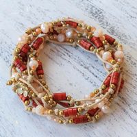 Calcite and Glass Beaded Wrap Bracelet from Thailand 'Lively Party' Item ID: 2669927242