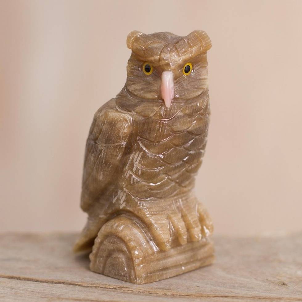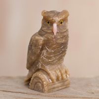 Calcite and Rose Quartz Gemstone Owl Sculpture from Peru 'Protective Owl' Item ID: 2669904221