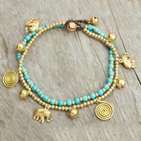 Calcite Bell Anklet with Brass Beads and Charms 'Elephant Bells' Item ID: 2669930452