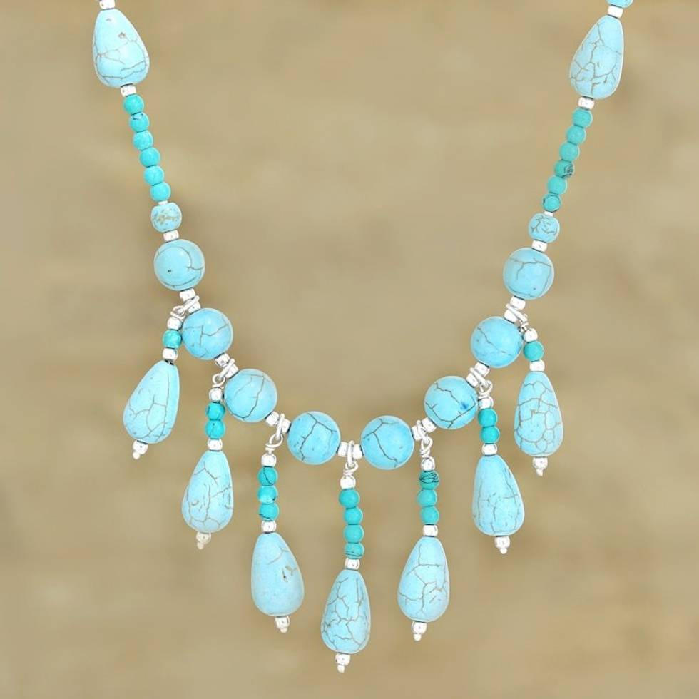 Calcite Gemstone Beaded Waterfall Necklace from India 'Blue Rapids' Item ID: 2671789651
