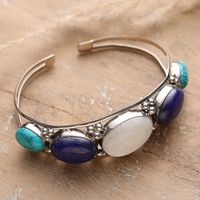 Calcite Lapis Lazuli and Rainbow Moonstone Cuff Bracelet 'Imperial Allure' Item ID: 2671781732