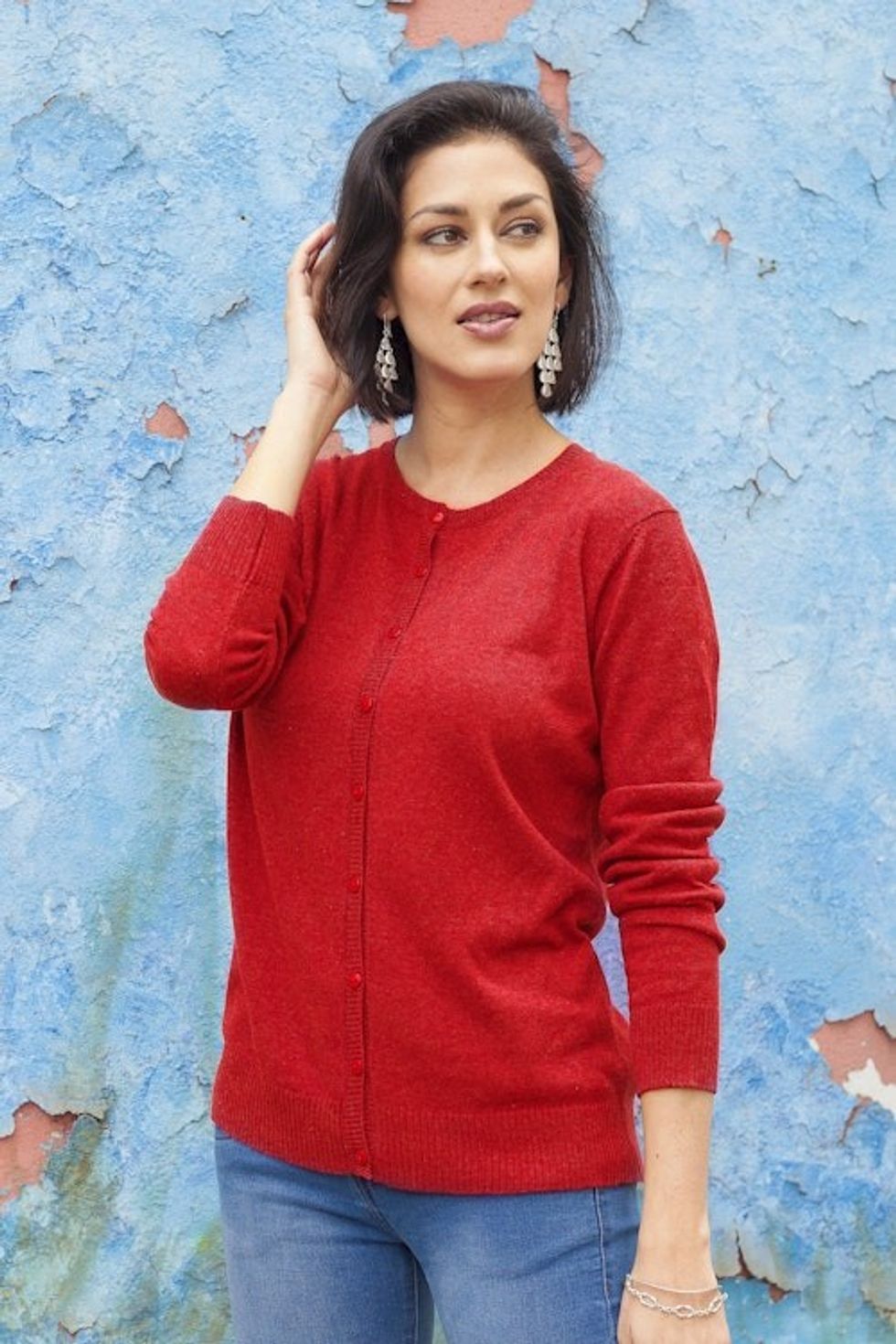 Cardinal Red Cotton Blend Cardigan Sweater from Peru 'Casual Comfort in Red' Item ID: 2669891176