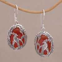 Carnelian and 925 Silver Cockatoo Dangle Earrings from Bali 'Cockatoo Garden' Item ID: 2669922101