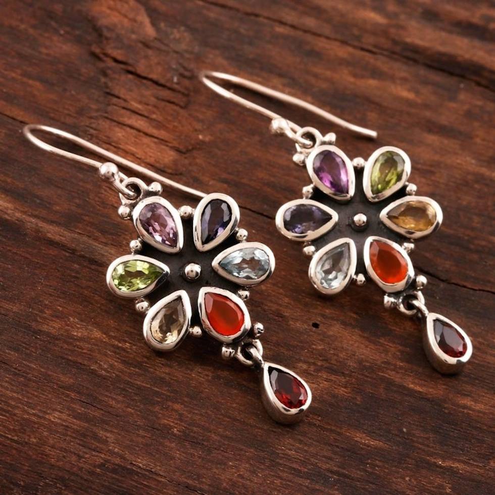 Carnelian and Blue Topaz Sterling Silver Dangle Earrings 'Rainbow Bright' Item ID: 2671789666