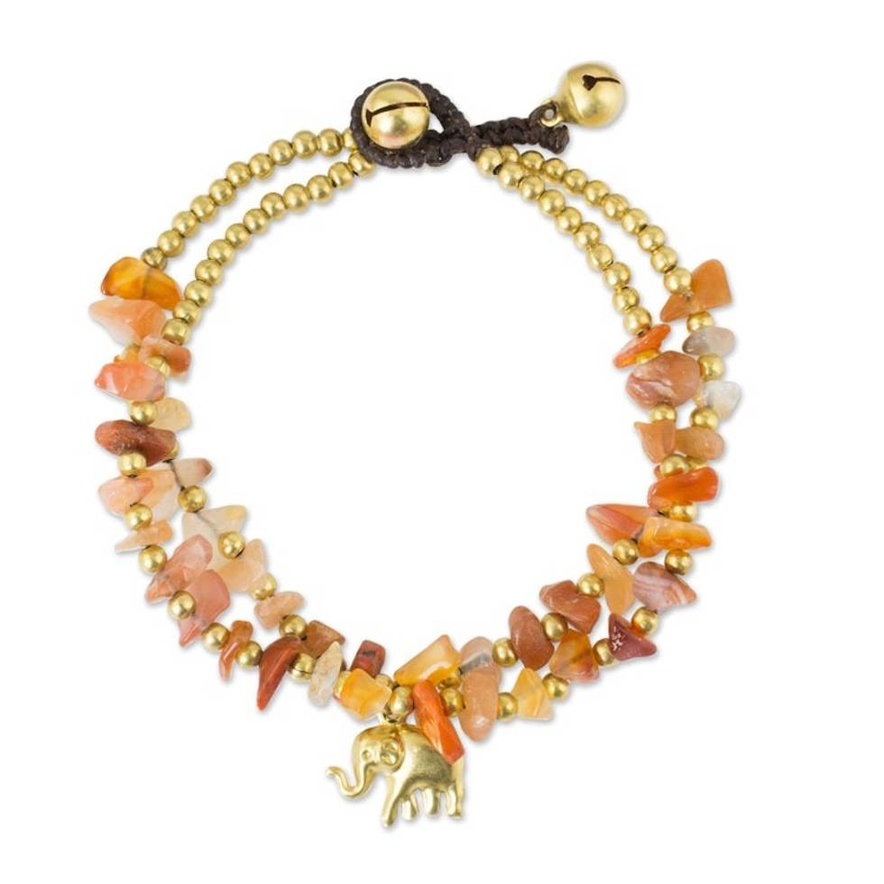 Carnelian and Brass Beaded Elephant Bracelet from Thailand 'Bright Elephant' Item ID: 2671802192