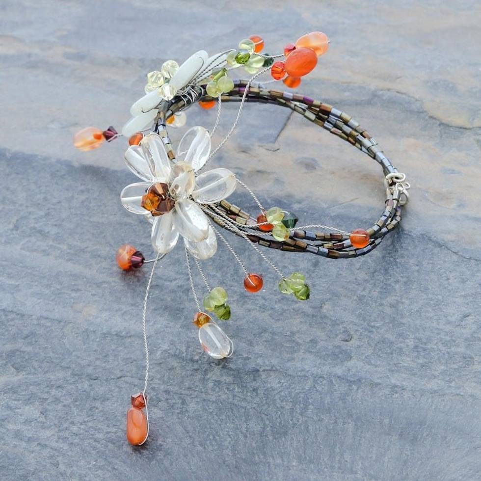 Carnelian and Citrine Beaded Flower Bracelet 'Blossoming Web' Item ID: 2671802795