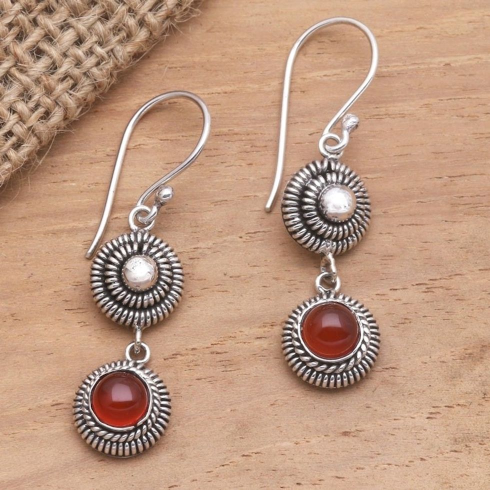 Carnelian and Cultured Freshwater Pearl Dangle Earrings 'Waning Light' Item ID: 2671745639