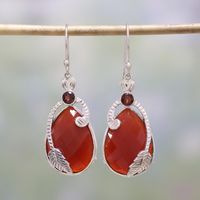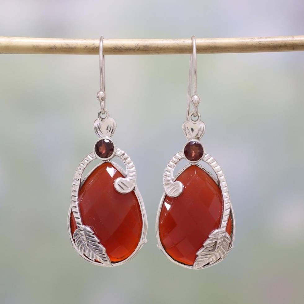 Carnelian and Garnet Leaf Dangle Earrings from India 'Leafy Radiance' Item ID: 2671790920