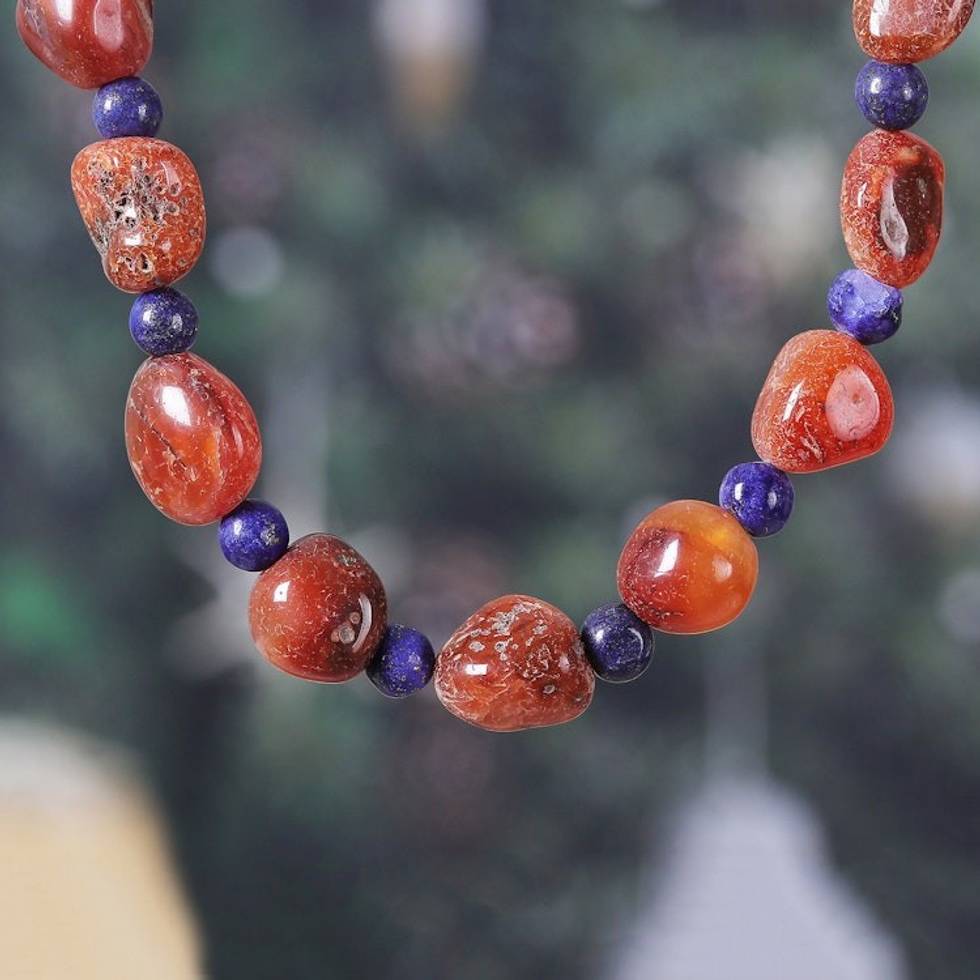 Carnelian and Lapis Lazuli Beaded Necklace from India 'Celestial Dance' Item ID: 2671625300