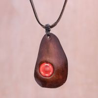 Carnelian and Leather Pendant Necklace from Thailand 'Stylish Avocado' Item ID: 2671799516