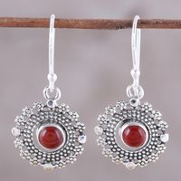 Carnelian and Silver Bubbly Dangle Earrings from India 'Bubbly Red Moons' Item ID: 2669923791