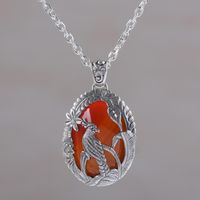 Carnelian and Sterling Silver Cockatoo Necklace from Bali 'Cockatoo Garden' Item ID: 2671734461