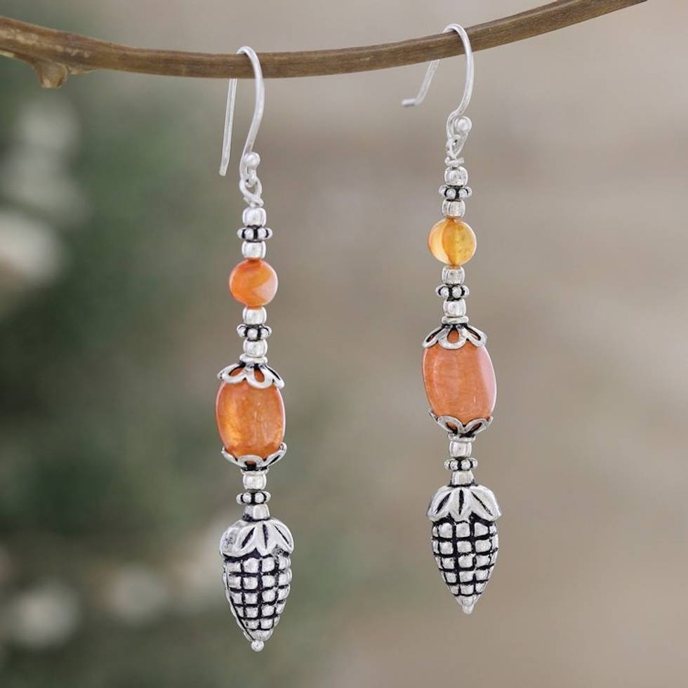Carnelian and Sterling Silver Fashion Dangle Earrings 'Sunset Garden' Item ID: 2671786645