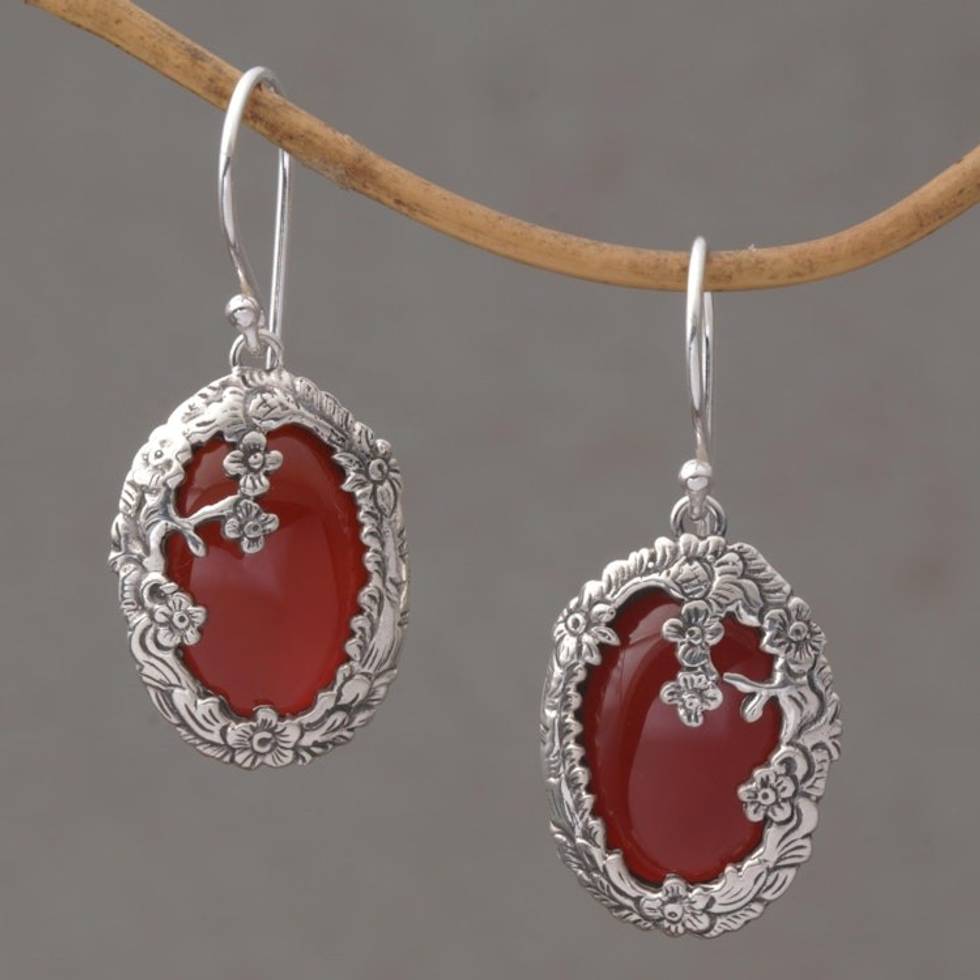 Carnelian and Sterling Silver Floral Dangle Earrings 'Dreamy Forest' Item ID: 2671820995