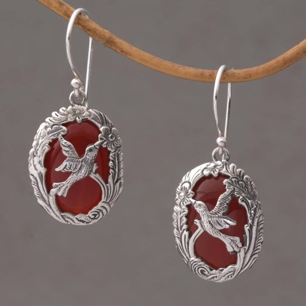 Carnelian and Sterling Silver Hummingbird Dangle Earrings 'Nature's Freedom' Item ID: 2671476618