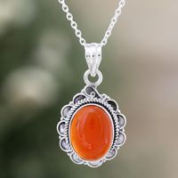 Carnelian and Sterling Silver Pendant Necklace from India 'Crimson Flame' Item ID: 2671787100