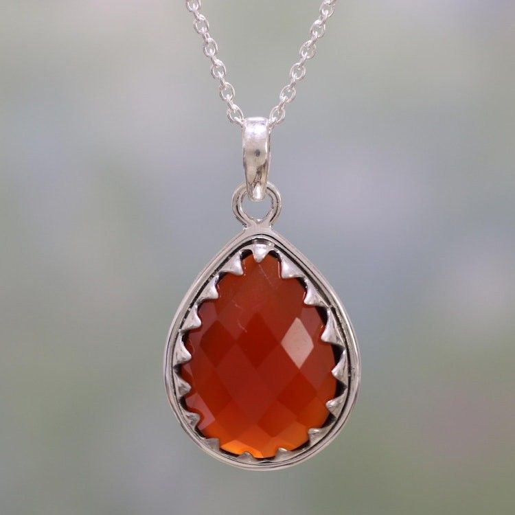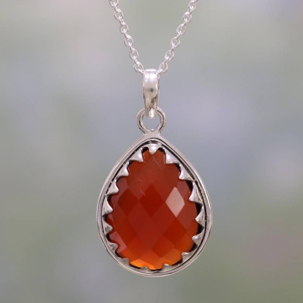 Carnelian and Sterling Silver Pendant Necklace from India 'Firelight' Item ID: 2671790757