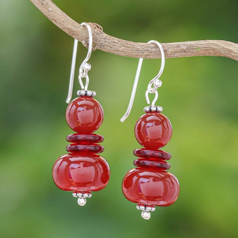 Carnelian Beaded Dangle Earrings from Thailand 'Fiery Memory' Item ID: 2669927836