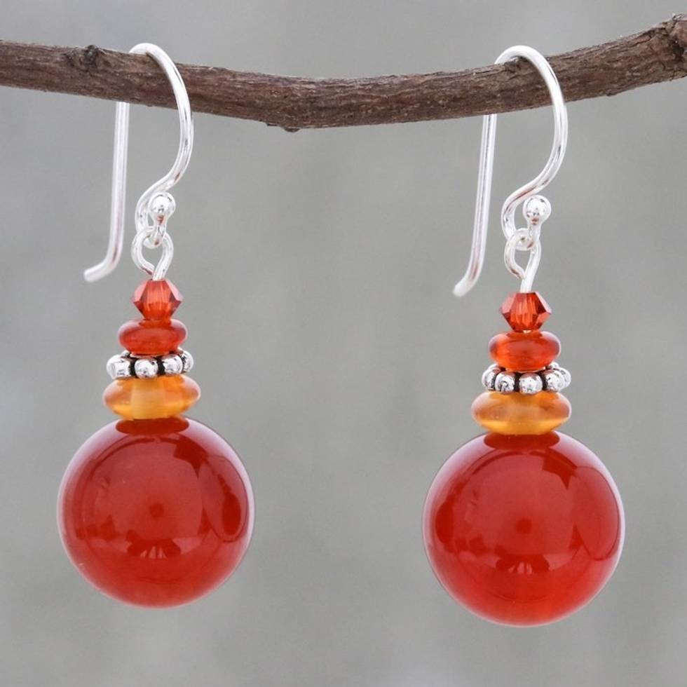 Carnelian Beaded Dangle Earrings from Thailand 'Global Wonder' Item ID: 2671815428