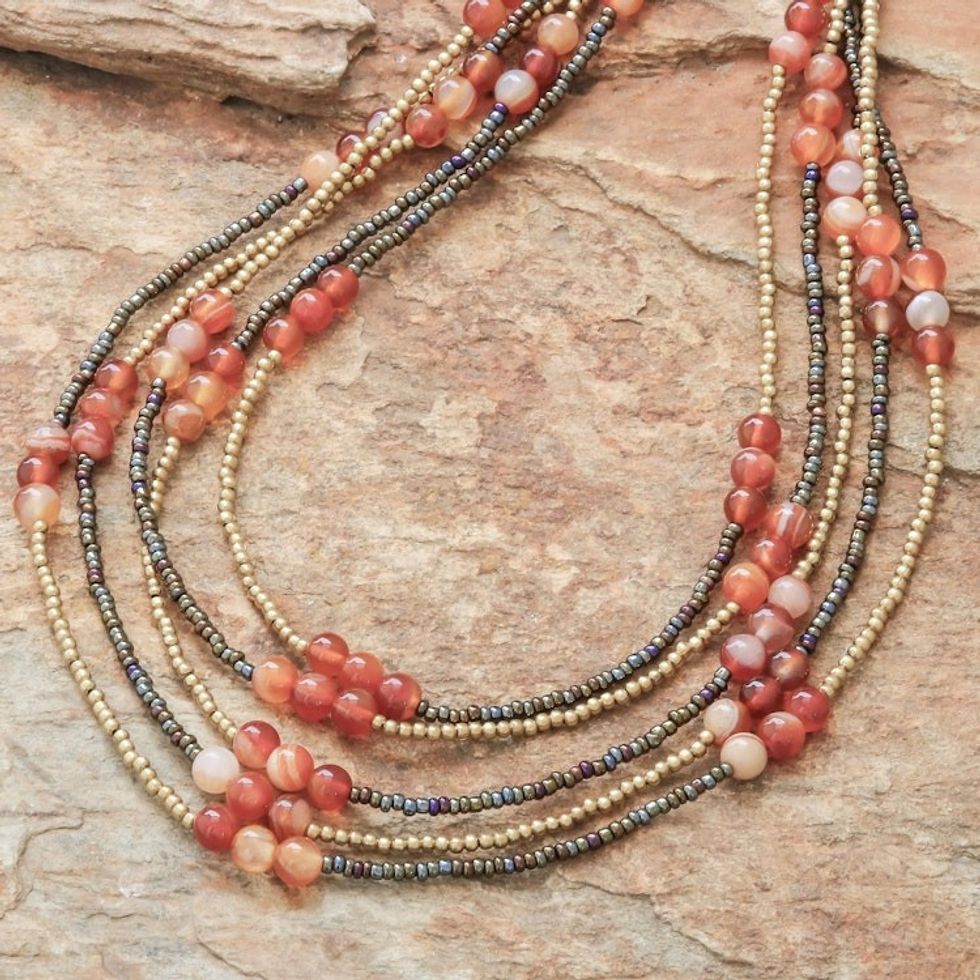 Carnelian Beaded Strand Necklace from Thailand 'Boho Elegance in Red-Orange' Item ID: 2669926638