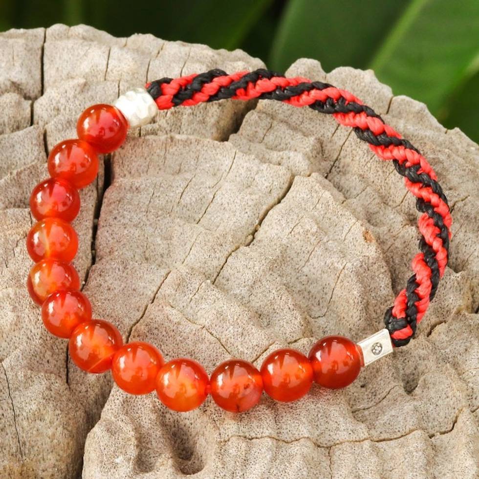 Carnelian Beaded Stretch Bracelet in Red and Black 'Fearless Journey' Item ID: 2671797832