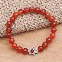 Carnelian Beaded Stretch Bracelet with Hamsa Hand 'Hamsa Hand' Item ID: 2671821331
