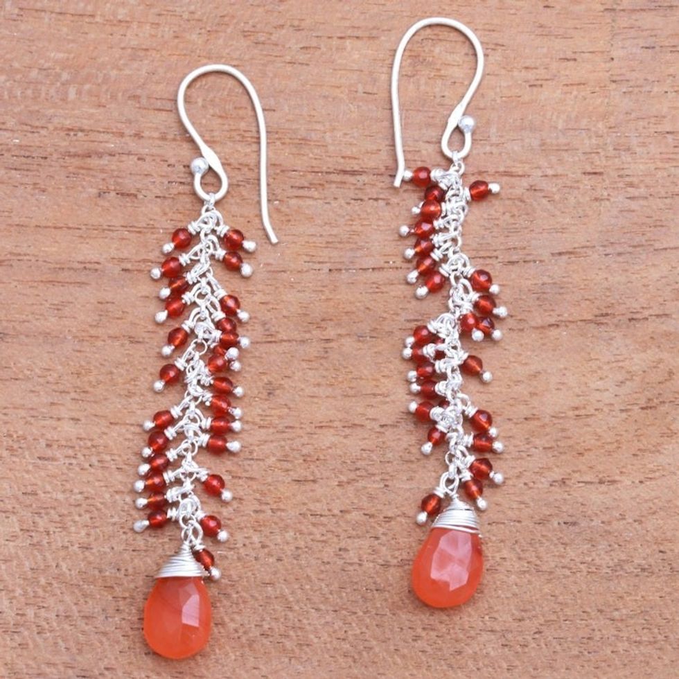 Carnelian Cluster Earrings Crafted in Bali 'Sunset Glitter' Item ID: 2671744935