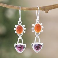 'Delhi Sunset' earrings are small, youthful looking, pretty earrings. The color of the carnelian is not as pictured, not as red. The color had a red shade, but more subdued even under light, but still attractive. The carnelian on the pendent necklace (same name as the earrings) has a color that is darker than the earrings, though it is the same shade and therefore, can be worn together. Good value.