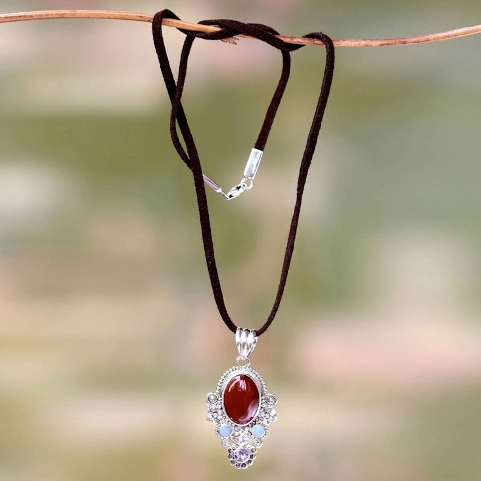 Carnelian Floral Necklace with Opal and Amethyst 'Floral Paradise' Item ID: 2669921455