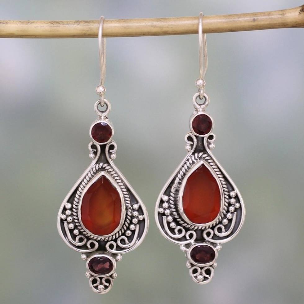 Carnelian Garnet and Sterling Silver Indian Dangle Earrings 'Fiery Glow' Item ID: 2671791920