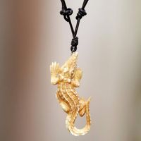 Carved Bone Alligator Pendant Necklace on Leather Cord 'Alligator' Item ID: 2676662399