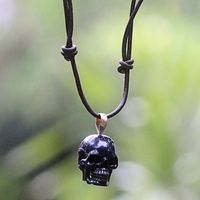 Carved Bone Skull Pendant on Cord Handmade in Indonesia 'Black Skull' Item ID: 2669921449