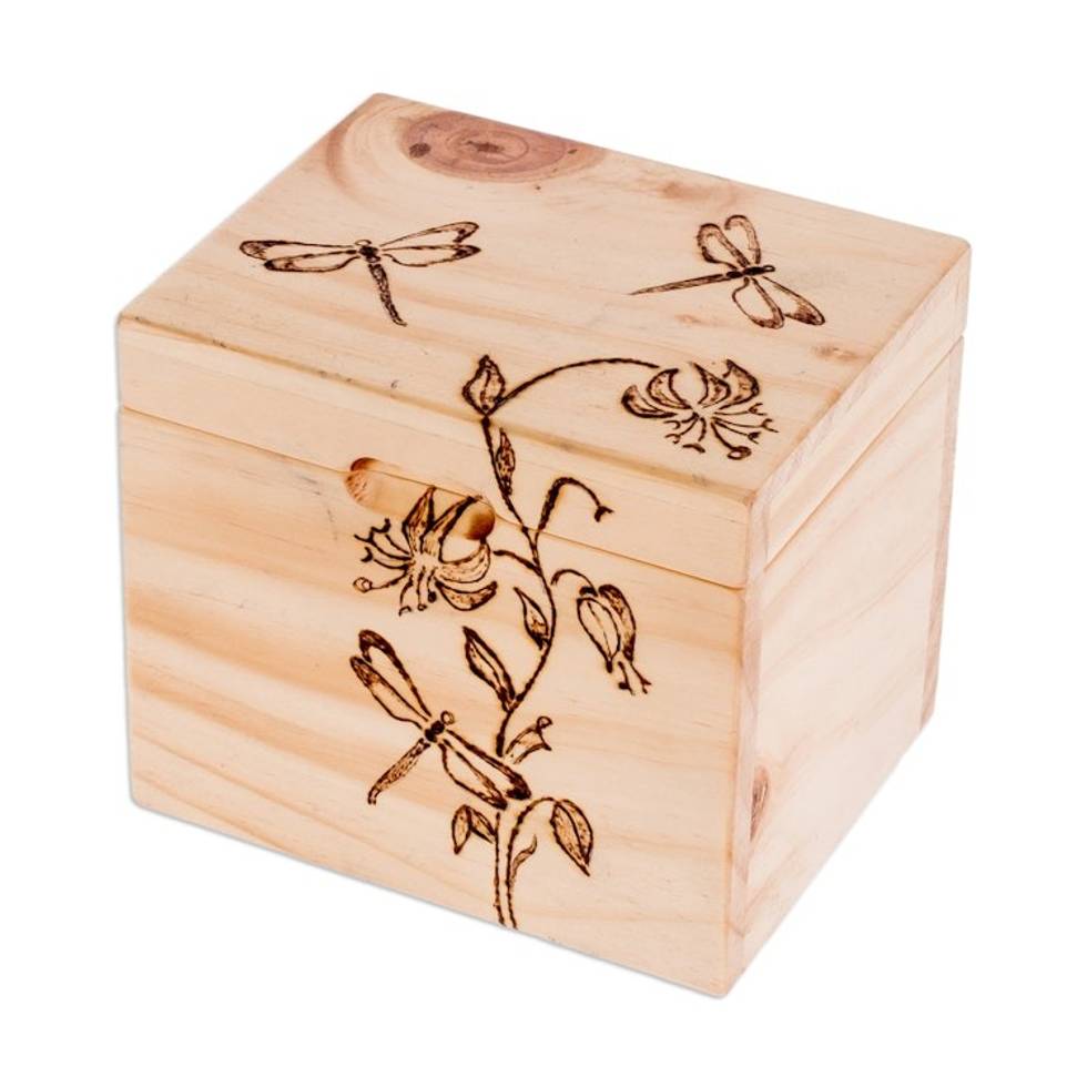 Carved Floral and Dragonfly-Themed Pinewood Decorative Box 'Dragonfly Traces' Item ID: 2671769391