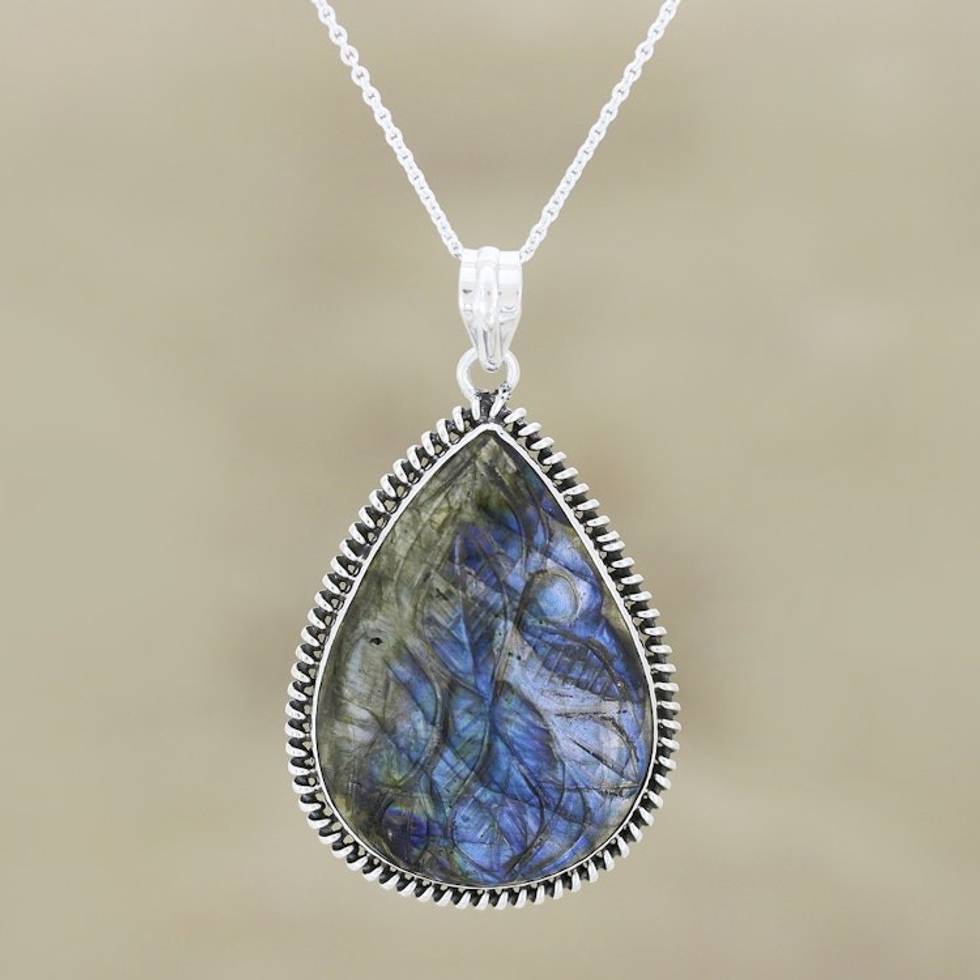 Carved Labradorite Pendant Necklace 'Aurora Garden' Item ID: 2671625612