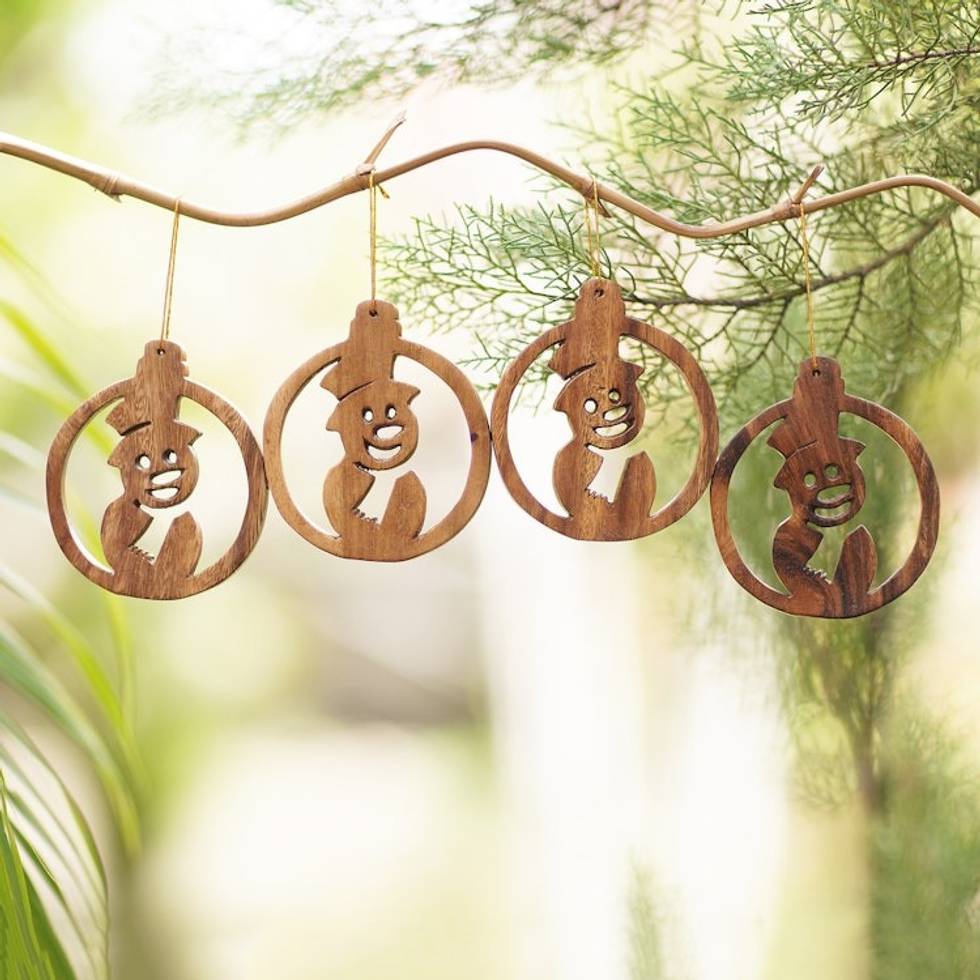 Carved Wood Christmas Ornaments Set of 4 'Wonderful Snowmen' Item ID: 2671747265