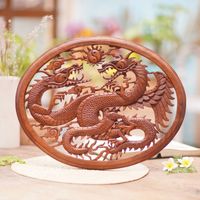 Carved Wood Dragon Relief Panel 'Naga Duality' Item ID: 2671698608
