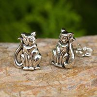 Cat Theme Hand Crafted Sterling Silver Button Earrings 'Contented Kittens' Item ID: 2669930455