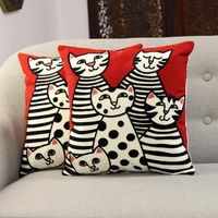 Cat-Themed Embroidered Cotton Cushion Covers Pair 'Cat Family' Item ID: 2669892295