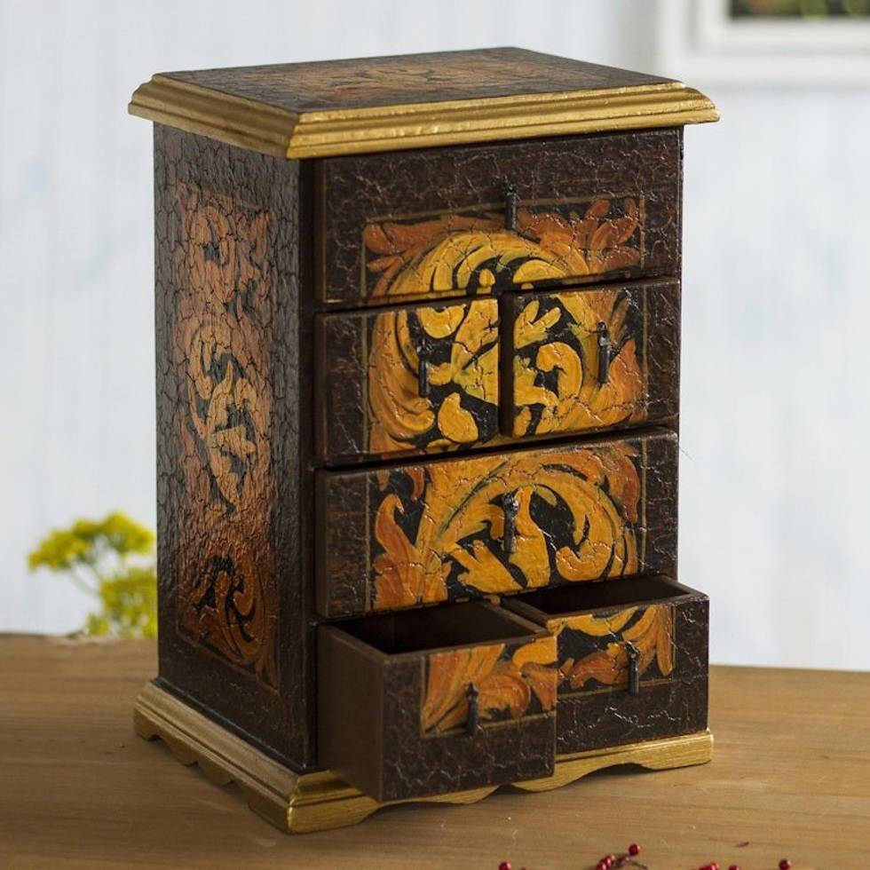 I ordered this jewelry box as a gift for my best friend. I wanted to find something that looked like an antique without being old and used. This is absolutely perfect. Soooo beautiful! The colors are are so vibrant and the details are impeccable. Plus I love the texture! I can't imagine having found anything more lovely or perfect. Thank you Antonio Rojas!