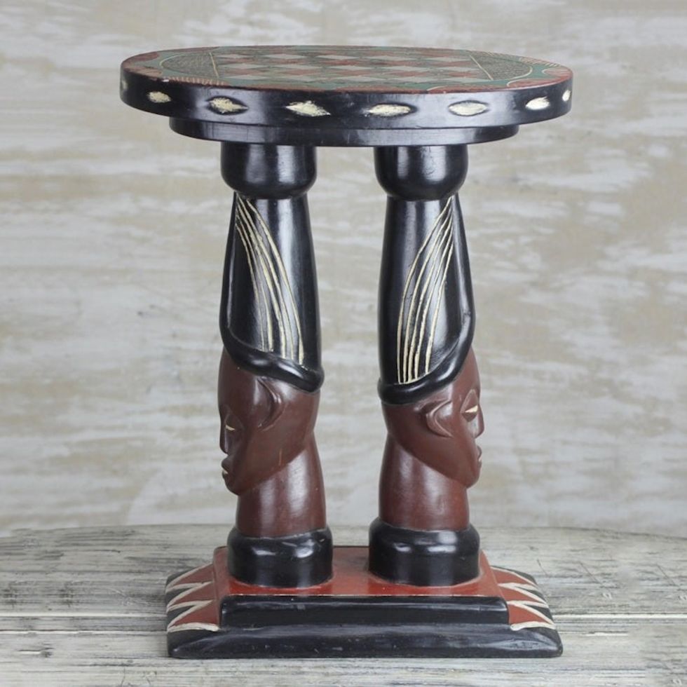 Cedar Wood Accent Table of Two Faces from Ghana 'Buddies' Item ID: 2671806369
