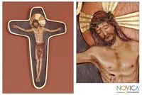 "Javier Ramirez takes a Byzantine image of Christ on the cross and gives a modern interpretation to the classic crucifix. Lovingly sculpting cedar wood, he depicts Jesus in an elegant and compassionate portrait. Gleaming bronze leaf enhances the lovely piece, which is an expression of the artisan's own deep faith.