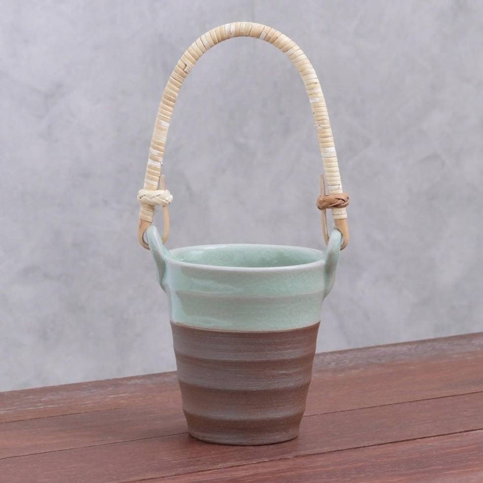 Celadon Ceramic and Natural Fiber Cup in Green from Thailand 'Picnic Mood in Green' Item ID: 2671798708