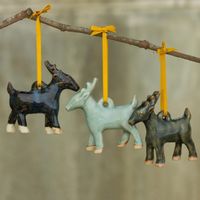Celadon Ceramic Deer Ornaments in Blue and Brown Set of 3 'Holiday Deer' Item ID: 2671802468