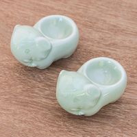 Celadon Ceramic Elephant Egg Cups from Thailand Pair 'Elephant Sisters' Item ID: 2671799330