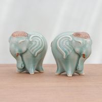 Celadon Ceramic Elephant Salt and Pepper Shakers Pair 'Calm Elephants in Green' Item ID: 2669892537