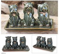 What a treasure! These beautiful cats have replaced the stage of "No Evil Monkeys" and have captured my mother's heart! She collected "Three Monkeys" sculpture for many years. But she adores cats and was thrilled to receive this gift. These sweet cats with morals greet everyone who enters Mom's front door! The dreamy blue green Earthtone Celedon glaze is so elegant! Exquisite artwork, Duangkam... read more