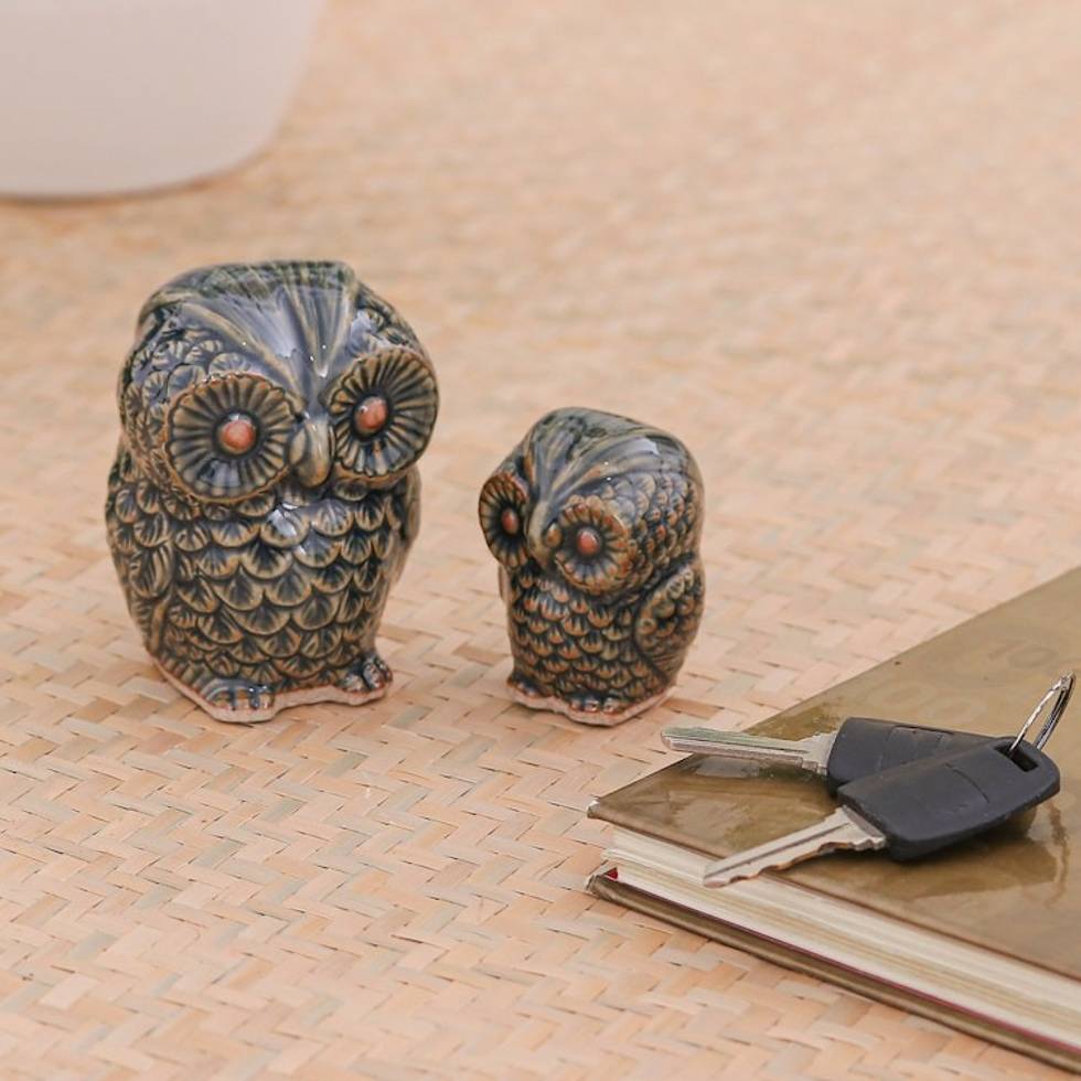 Celadon Ceramic Figurines from Thailand pair 'Little Green Owls' Item ID: 2671641394