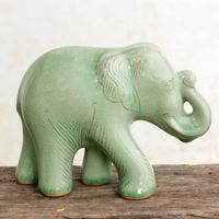 Celadon Ceramic Happy Elephant Figurine by Thai Artisans 'Smiling Elephant' Item ID: 2671802252