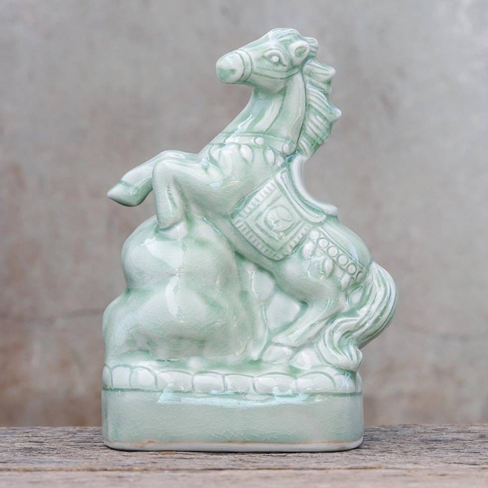 Celadon Ceramic Horse Sculpture Crafted in Thailand 'Lucky Horse' Item ID: 2671799521
