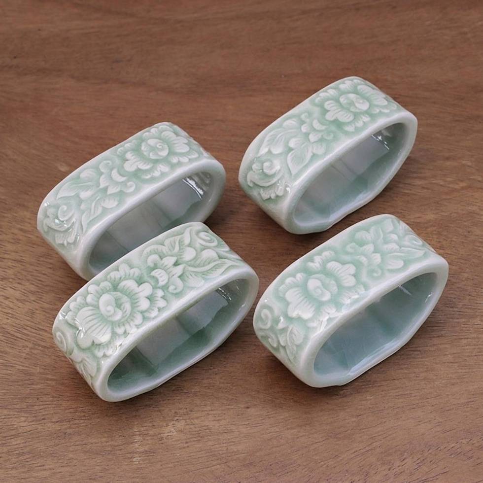 Celadon ceramic napkin rings Set of 4 'New Growth' Item ID: 2671802976